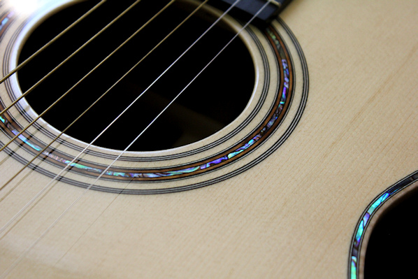 Le modèle 00 que je fabrique est inspiré du modèle de chez Martin mais a été redessiné pour avoir une forme un peu plus arrondie. Sa caisse légèrement plus petite qu'une OM, son diapason court et son barrage avancé/affiné en font une guitare assez "responsive" idéale pour un jeu aux doigts.