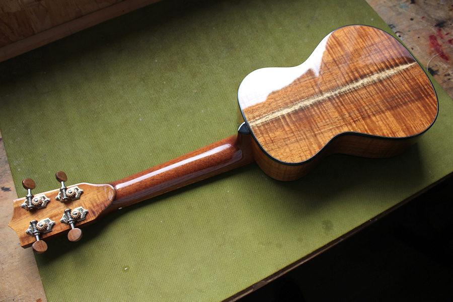 J'utilise principalement le Koa pour la fabrication de mes ukulélés (bois natif d'Hawaï utilisé pour la fabrication des premiers ukulélés) mais d'autres essences peuvent bien sur être utilisées: acajou, palissandre, érable, ziricote, épicéas, etc... tout dépend du son que l'on souhaite obtenir.